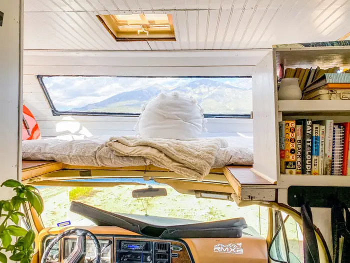 Fresh herbs in a camper? Yes, please. A mini greenhouse under a skylight is both practical and vibrant. Mount a small shelf or tray under an existing skylight and add a few potted herbs or succulents.