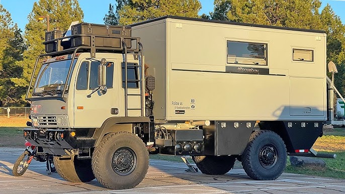 Conversion Basics: Start with a beast like an M35 cargo truck or a Humvee chassis. Reinforce the frame for off-road stress, add all-terrain tires, and insulate the cargo area for livability.
