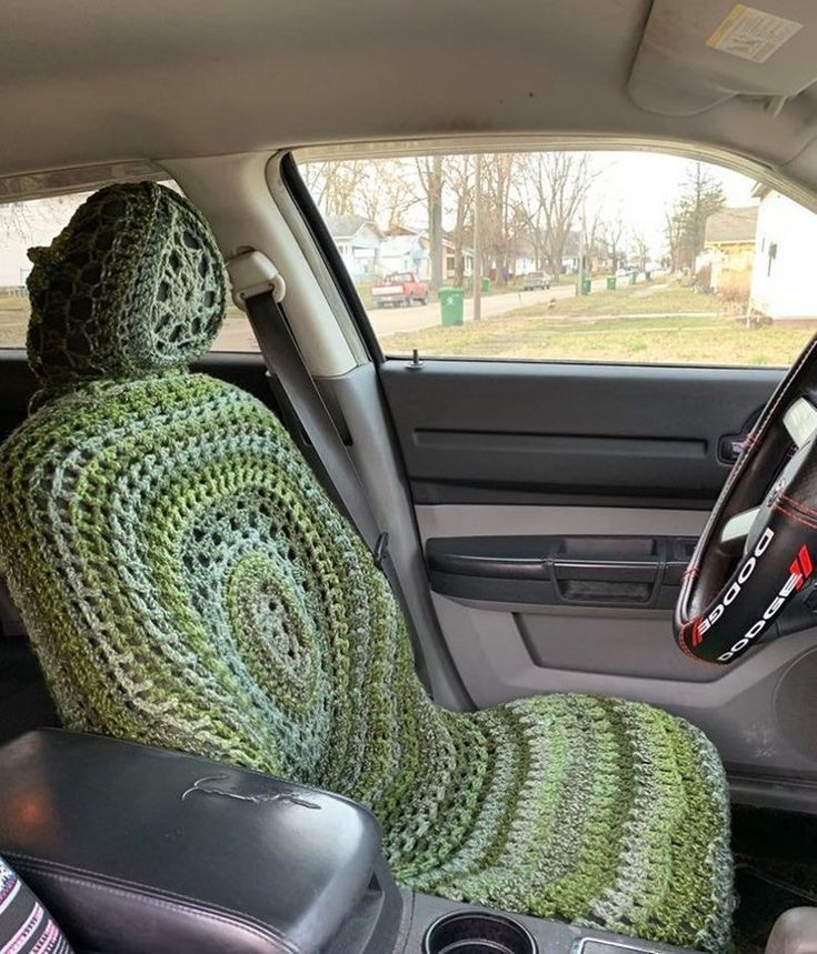 If crochet accents whet your appetite, go all-in with full-seat crochet covers. These handcrafted beauties blanket your seats in intricate patterns, turning your car into a rolling art piece.