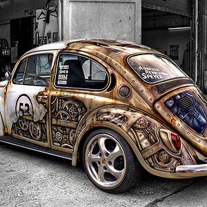 This look is for the dreamers who love Mad Max or Victorian sci-fi. A patina-finished VW Bug I saw at a show looked like it rolled out of a 19th-century factory, and I was obsessed.