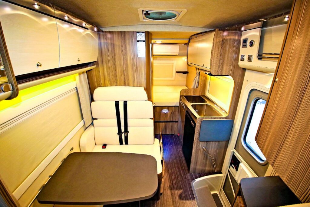 One van had a platform bed that doubled as a storage bench, with a pull-out table tucked underneath. I’ve seen a friend wrestle with a clunky fold-out bed in their van, swearing as it jammed halfway-convertible furniture avoids that mess.
